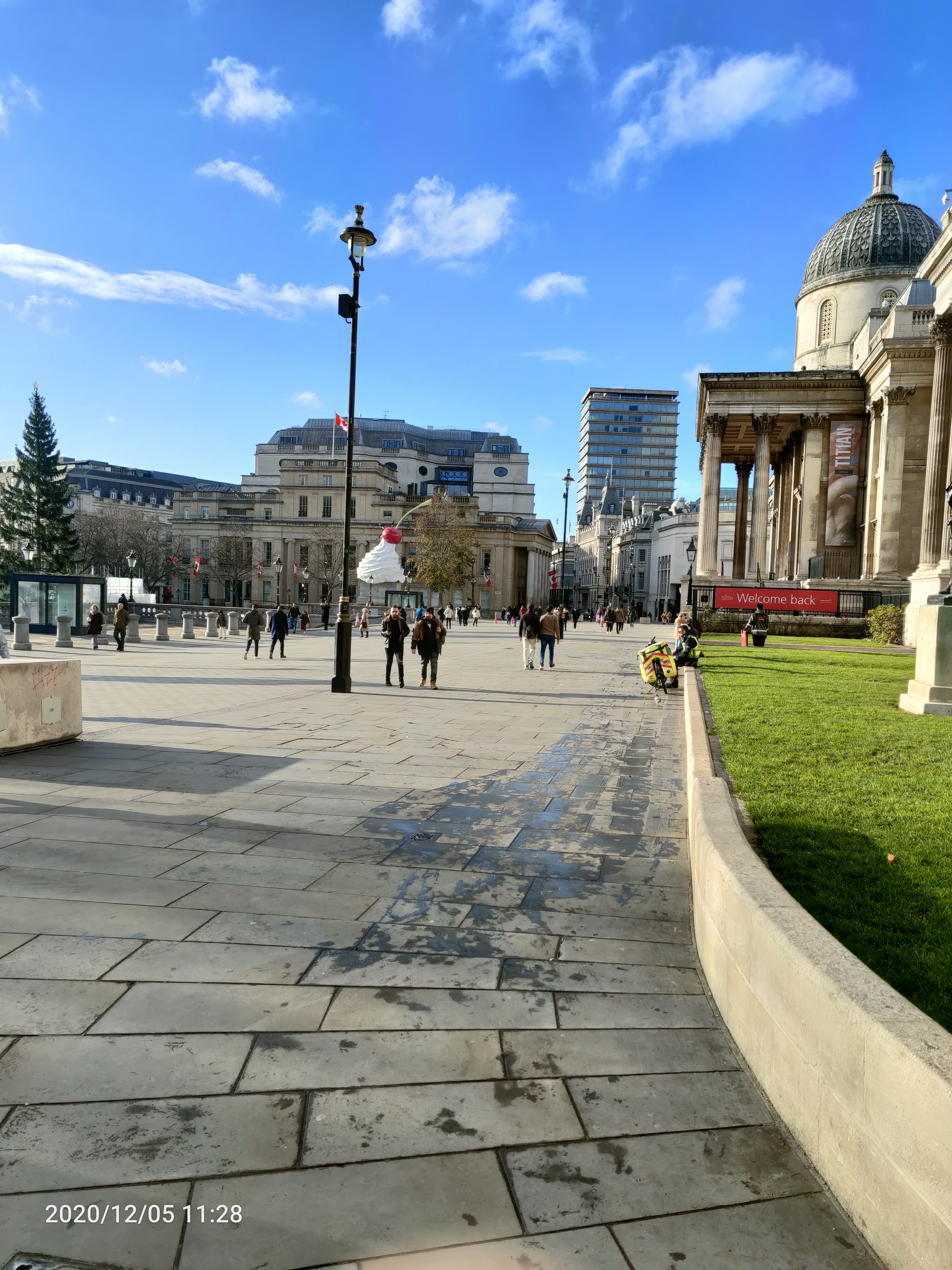 The images I have provided above are Leicester Square, statues around the Gardens (I could not get near Bugs Bunny because the area was not accessible), an image of how quiet it was at Trafalgar Square is provided, and a tree I saw around The London Eye area, it caught my eye with its autumn colours.